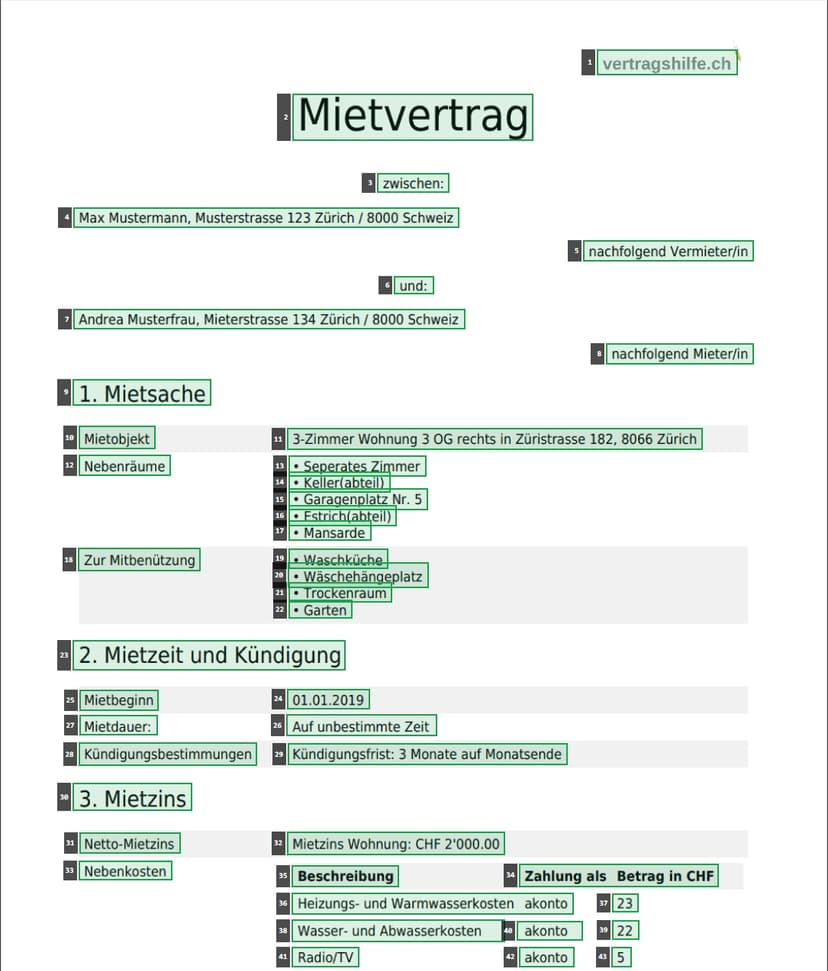 - Deep Structure Recognition: Erfassung komplexer Gliederungen (z. B. I. 1. a) aa)) und Randnummern.